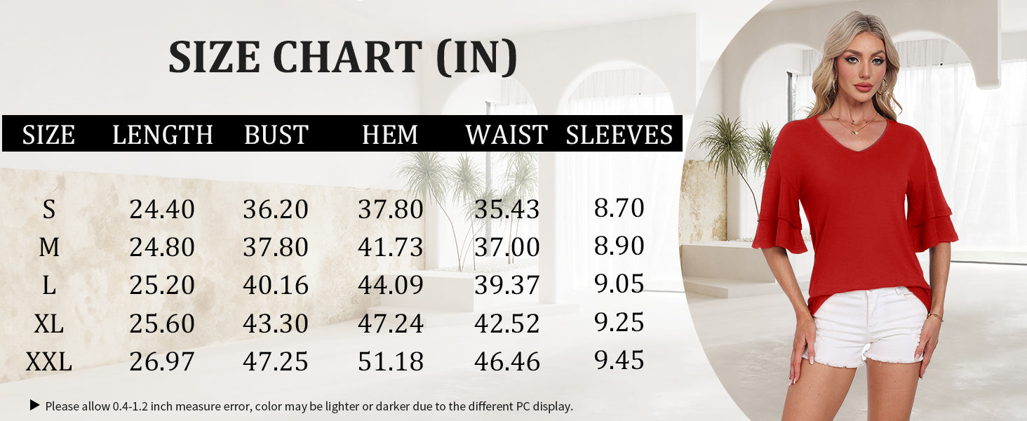 White - Women's Shirt Ruffle Sleeve T-Shirt V-Neck Double Layer Bell Sleeve Top